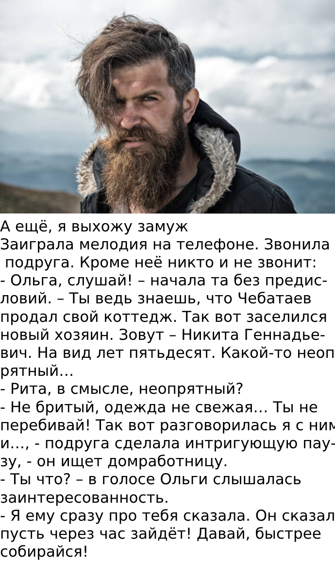 Ольга долго стучала в дверь, ведущую во двор. Уже собралась уходить, когда послышалась ругань, затем открылась дверь, и она увидела мужчину неопределённого возраста, действительно, неопрятного, сильно обросшего, но пахло от него дорогим коньяком.