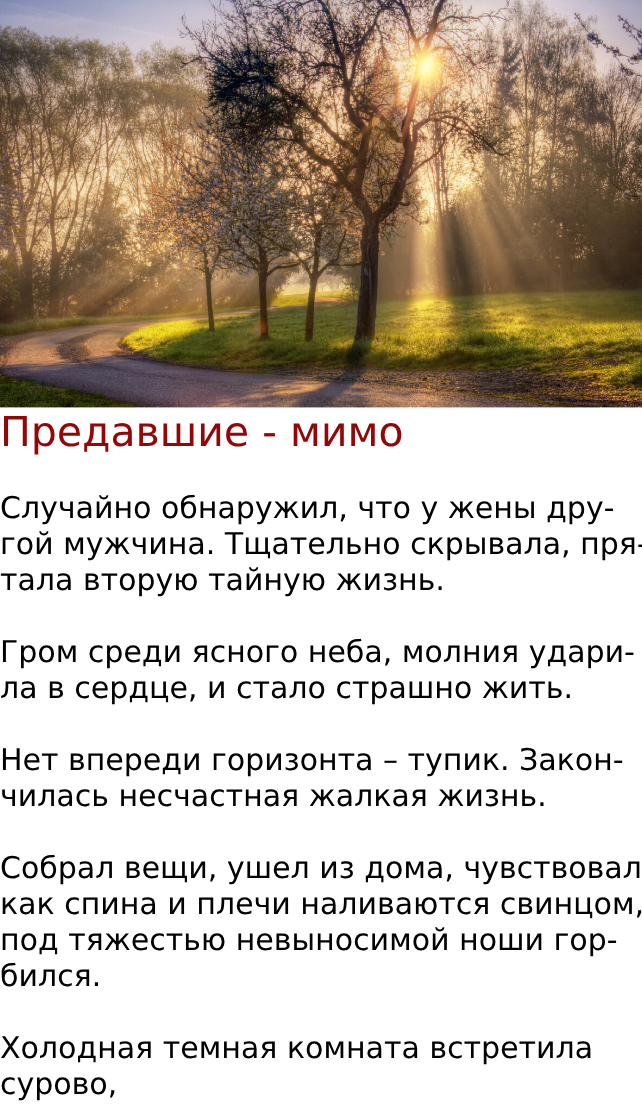И преобразилась жизнь, потому что освободилась от предательства и лжи. Жить надо, жить, а предавшие нас – мимо.