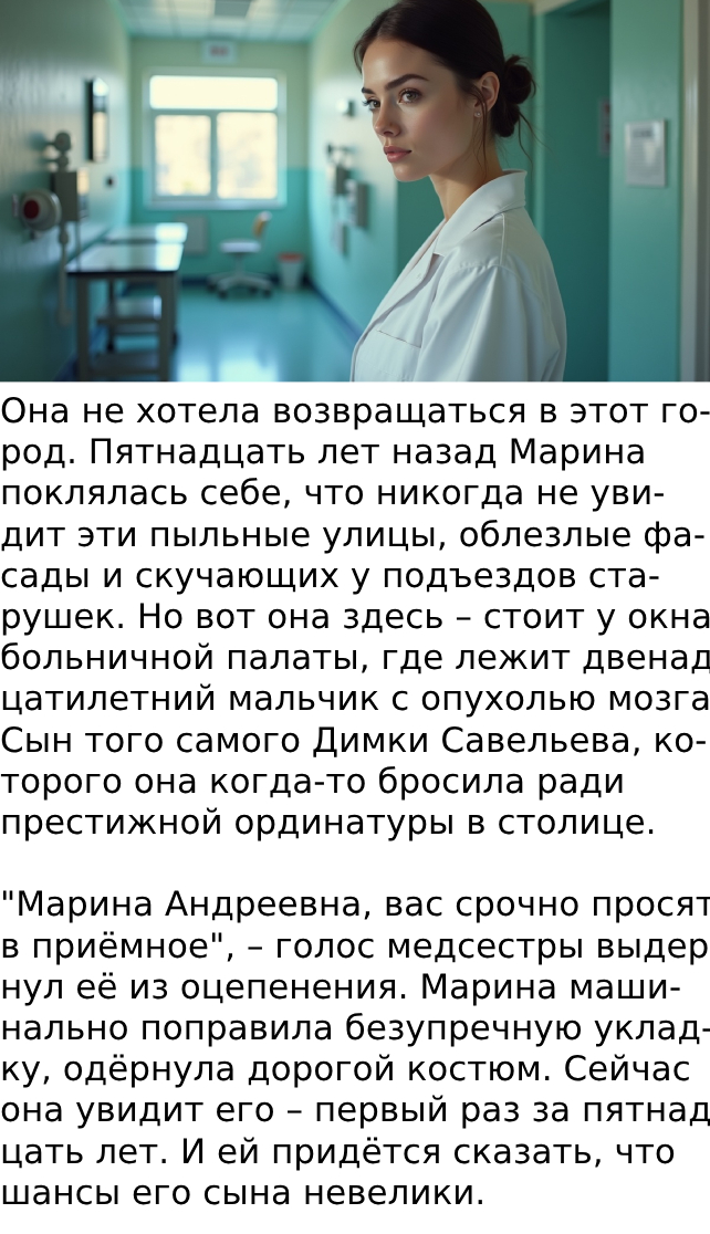 -Здравствуй, Марин, – его голос звучал спокойно, будто они виделись вчера. – Значит, теперь ты будешь лечить моего сына?