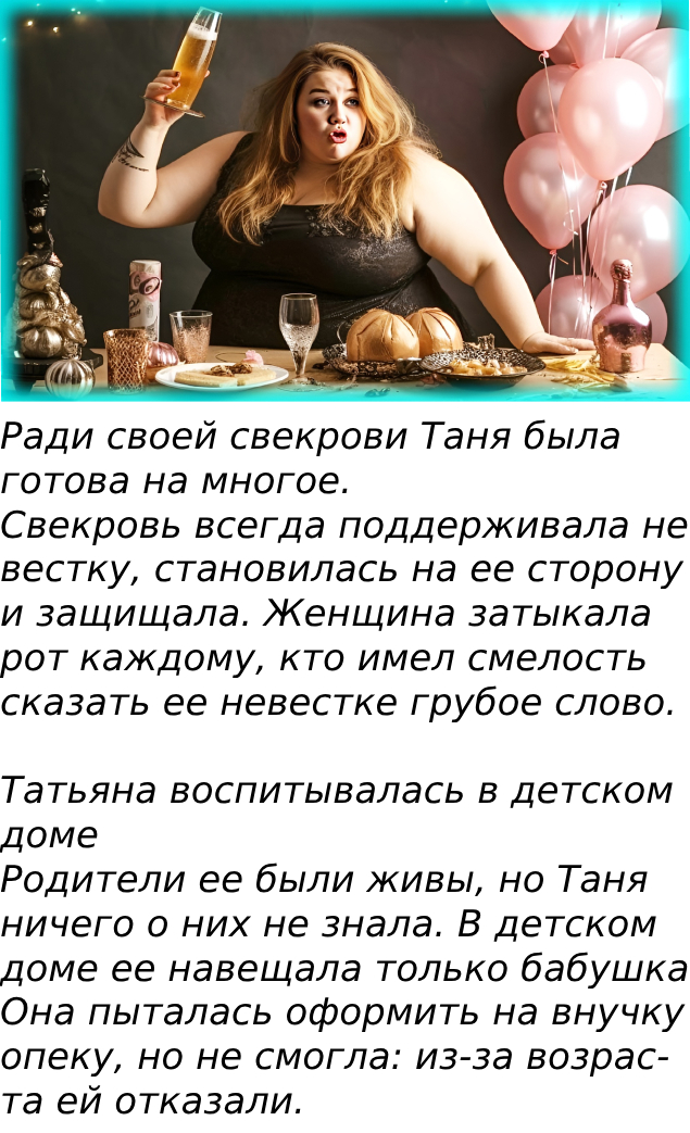Таня и Леша поженились год назад. Молодая женщина, вспомнив, как боялась идти знакомиться со свекровью, улыбнулась. Зря, кстати, боялась: Василиса Гавриловна приняла ее как родную.