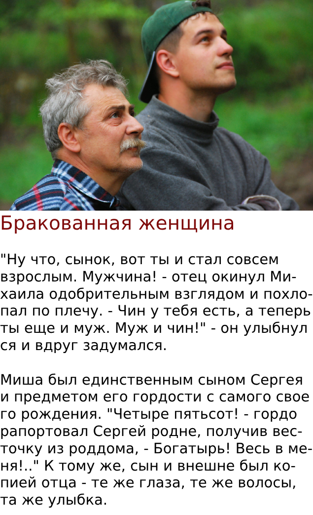 “Папа, как же так получилось?” – возмущался Миша, – “Исключение, подтверждающее правило, – пожал плечами Сергей. – Просто тебе женщина бракованная попалась. Бывает.”
