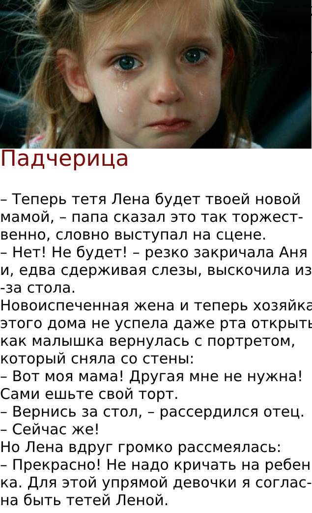 – Я буду стараться. Слушаться, – уточнила Анечка. – А любить буду маму.