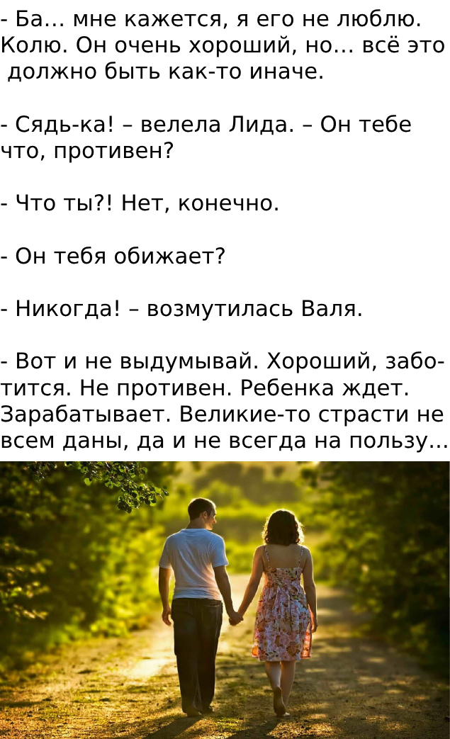 Потом Валя забеременела, и испугалась. Любви-то не было. Разве без любви детей рожают? Ей казалось, что нет. Но Коля обрадовался, в отличие от его матери.