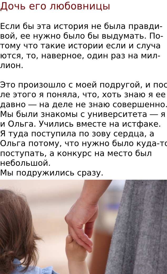 Она мне не ответила. Я открыла дверь ― на пороге стояла девушка и держала за руку девочку лет трех.
