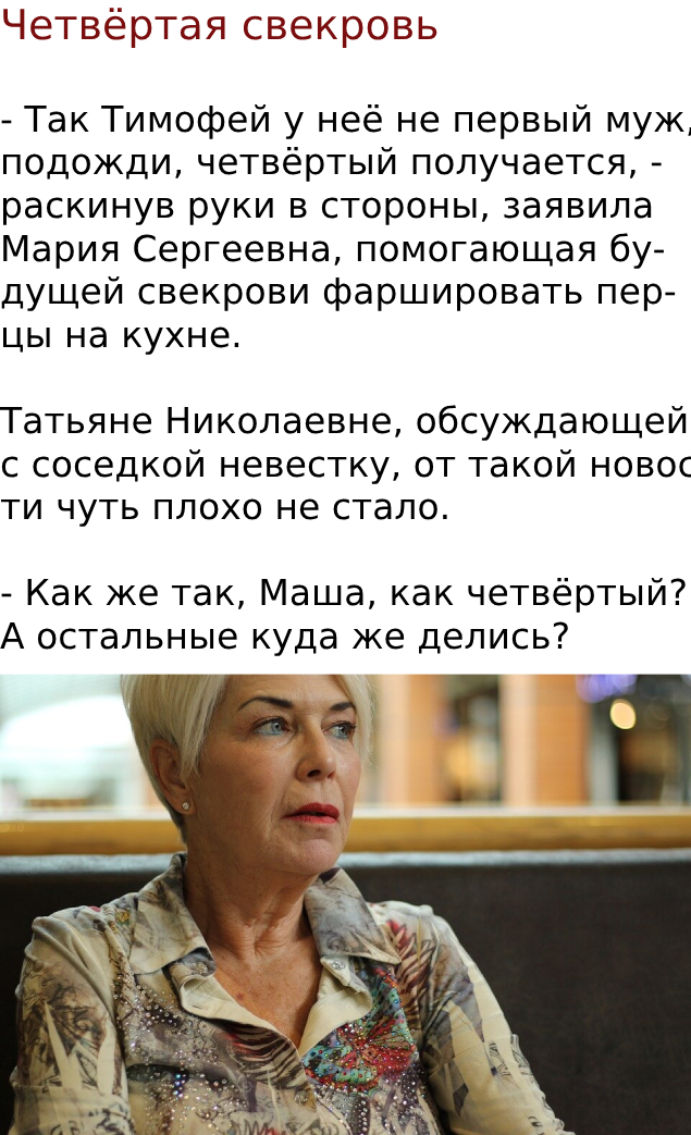 Тимофей был старший сын Татьяны Николаевны, первенец, оттого считался самым надёжным и рассудительным. А тут во второй раз решил жениться и на той, что три раза замужем была.