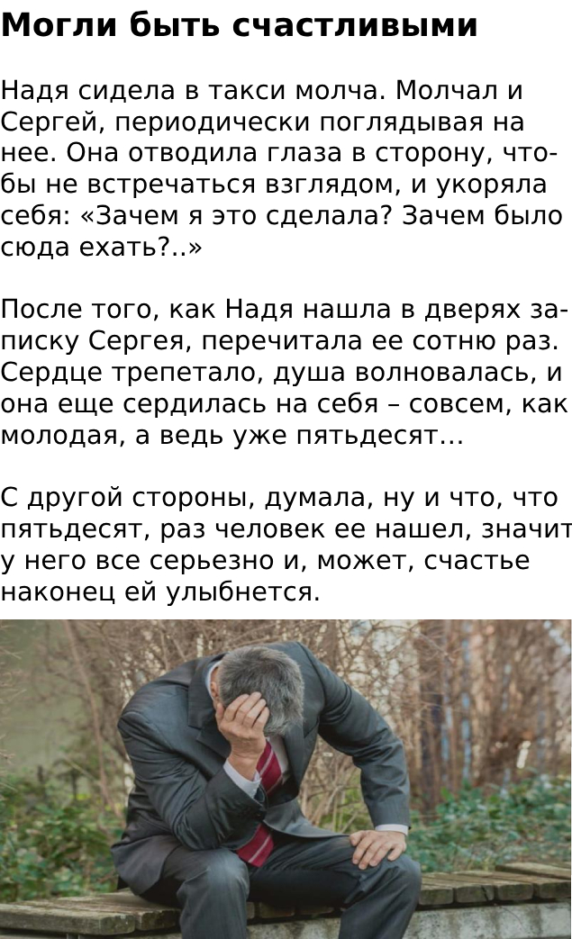 А потом он звонить перестал. Надя переживала сначала, но решила, что он воссоединился с семьей, и успокоилась.