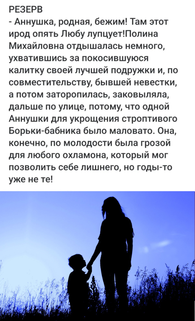 Аннушка, несмотря на всю свою любовь, растоптанную и изничтоженную под корень тумаками и незаслуженными оскорблениями, ушла от мужа сразу после того, как он в пьяном бреду заявил, что его сын ему вовсе и не сын. Похож, мол, на соседа, и мало ли с кем Анюта время проводила, пока муж на заимке вкалывал.